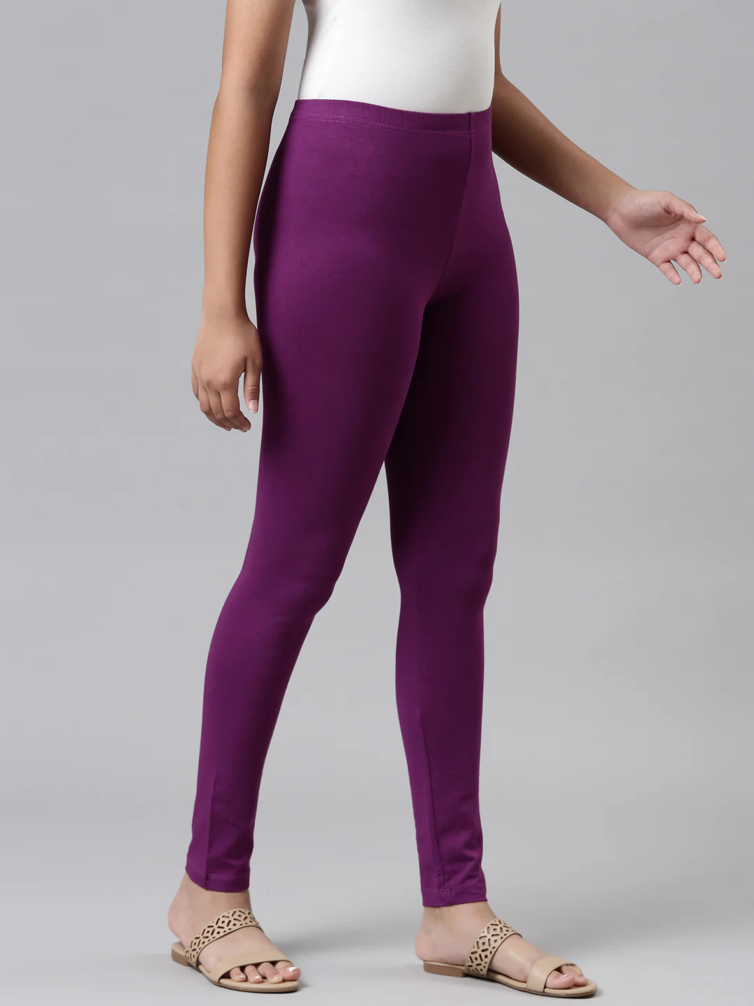 Medium Purple Cotton Stretch Ankle Length Leggings