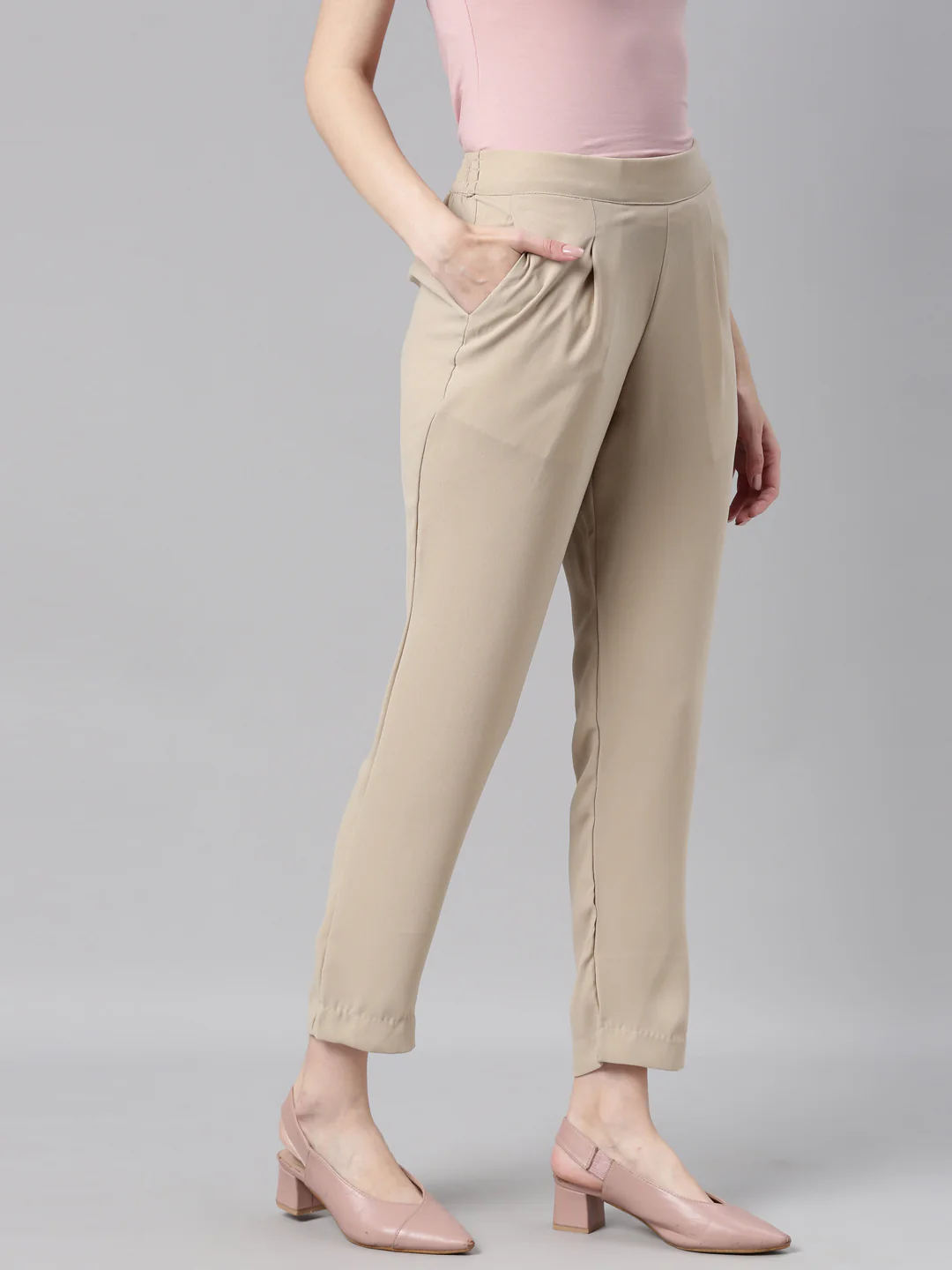Go from ethnic to Formal look in a jiffy with the Solid Beige Formal Trouser. Made from Polyester & Spandex it has a elasticised waistband, a slant pocket.