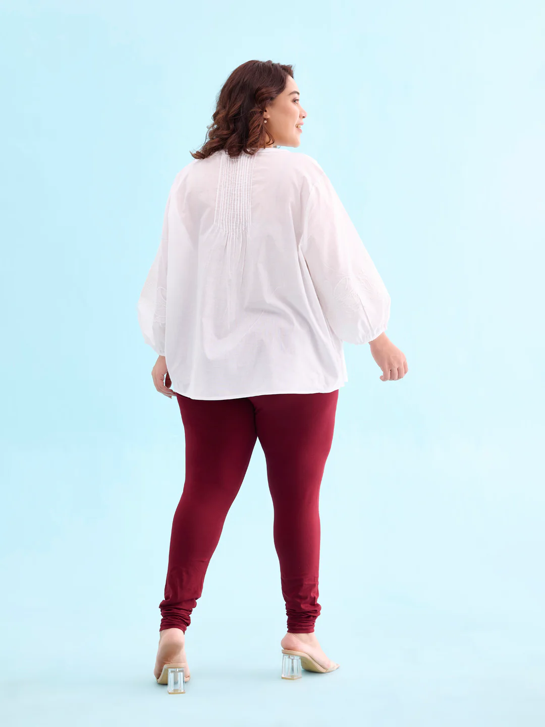 Go chic with a pair of Maroon Solid Churidar Leggings. Made from high quality cotton, it has a elasticised waistband & gathers at the hemline.