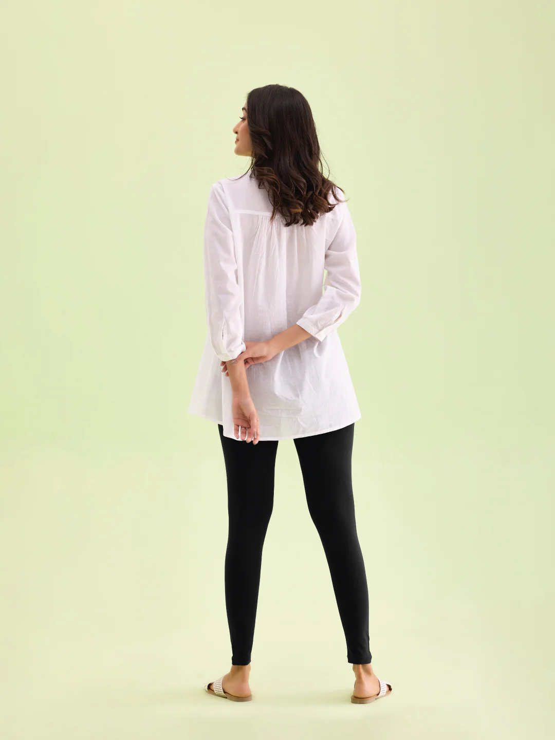Complete any look, be it traditional or western with these Solid Black Leggings. Made from cotton & elastane, it has a elasticised waistband & has a slim fit.