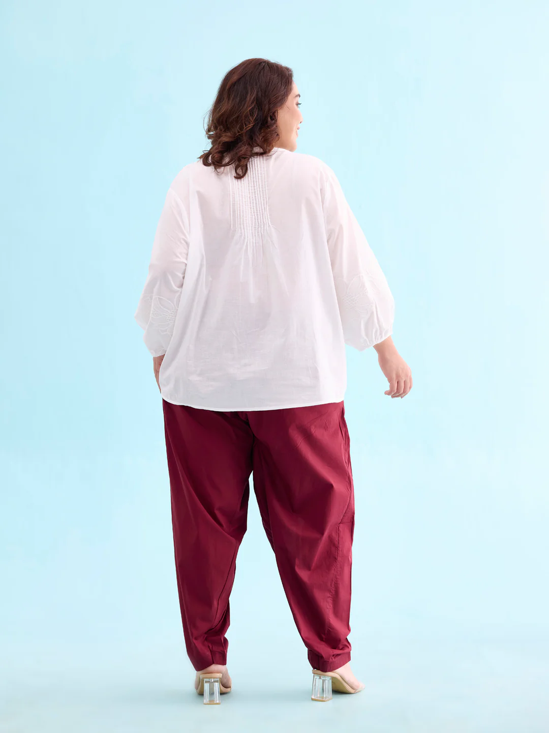 Spruce up a look or spend the day comfortably in the Maroon Cotton Salwar. It has a drawstring pull-up closure, front pleats with a regular fit. Can pair it with a tunic or any kurti for a fun everyday look.