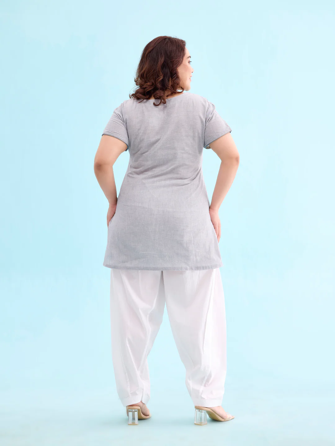 Spruce up a look or spend the day comfortably in the White Cotton Salwar. It has a drawstring pull-up closure, front pleats with a regular fit. Can pair it with a tunic or any kurti for a fun everyday look.